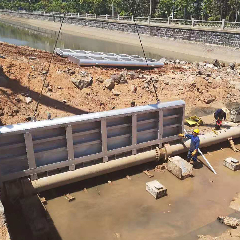弧型閘門組成,安裝,弧形閘門是由面板、豎梁、橫梁(主梁、次梁)和上下支壁等共同組成的具有弧形表面的鋼結構。弧形閘門具有弧形的擋水面板,當弧形擋水面板受水壓后,通過支臂傳給固定邊墩的2個支座。啟閉時整個閘門繞轉,鉸軸的旋轉動中通常與弧形擋水面板的圓心重合,因而水壓力的合力總是通過轉動中。